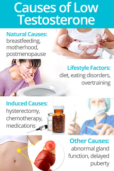 All in all, a lack of testosterone can be caused by various natural, induced, and other factors for women of all ages.