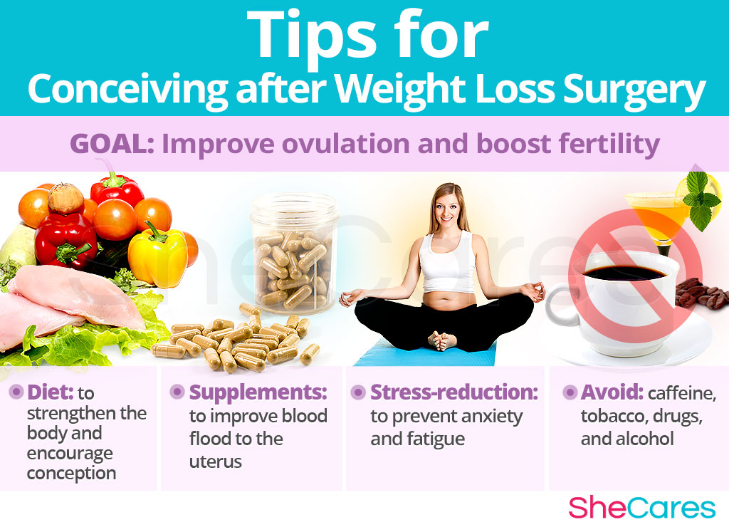 Contraception. After a bariatric surgery, your fertility might rapidly improve. Although it is a desired effect, you should consider contraception to prevent getting pregnant too soon. Keep in mind that since oral contraceptives might not be properly absorbed by the body, their effectiveness might be compromised.
