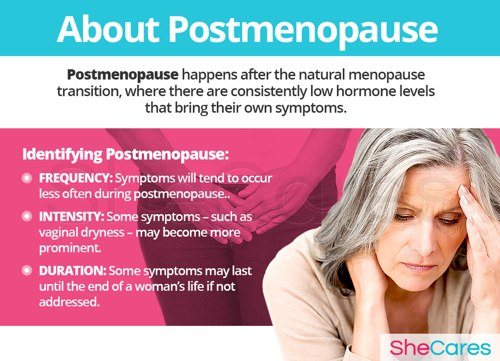 Continue to the next section for information on the specific symptoms of postmenopause, as well as conditions to look out for.